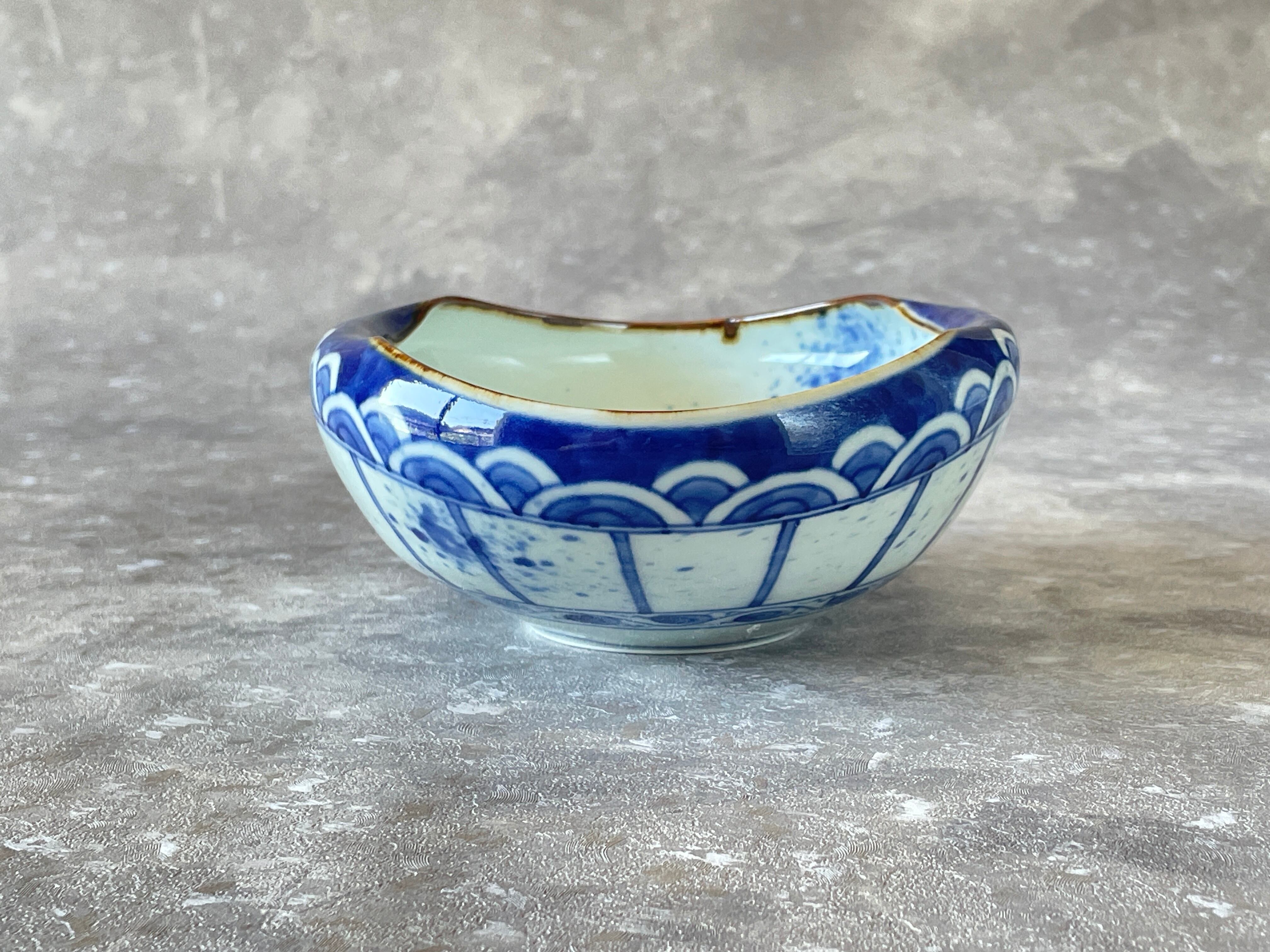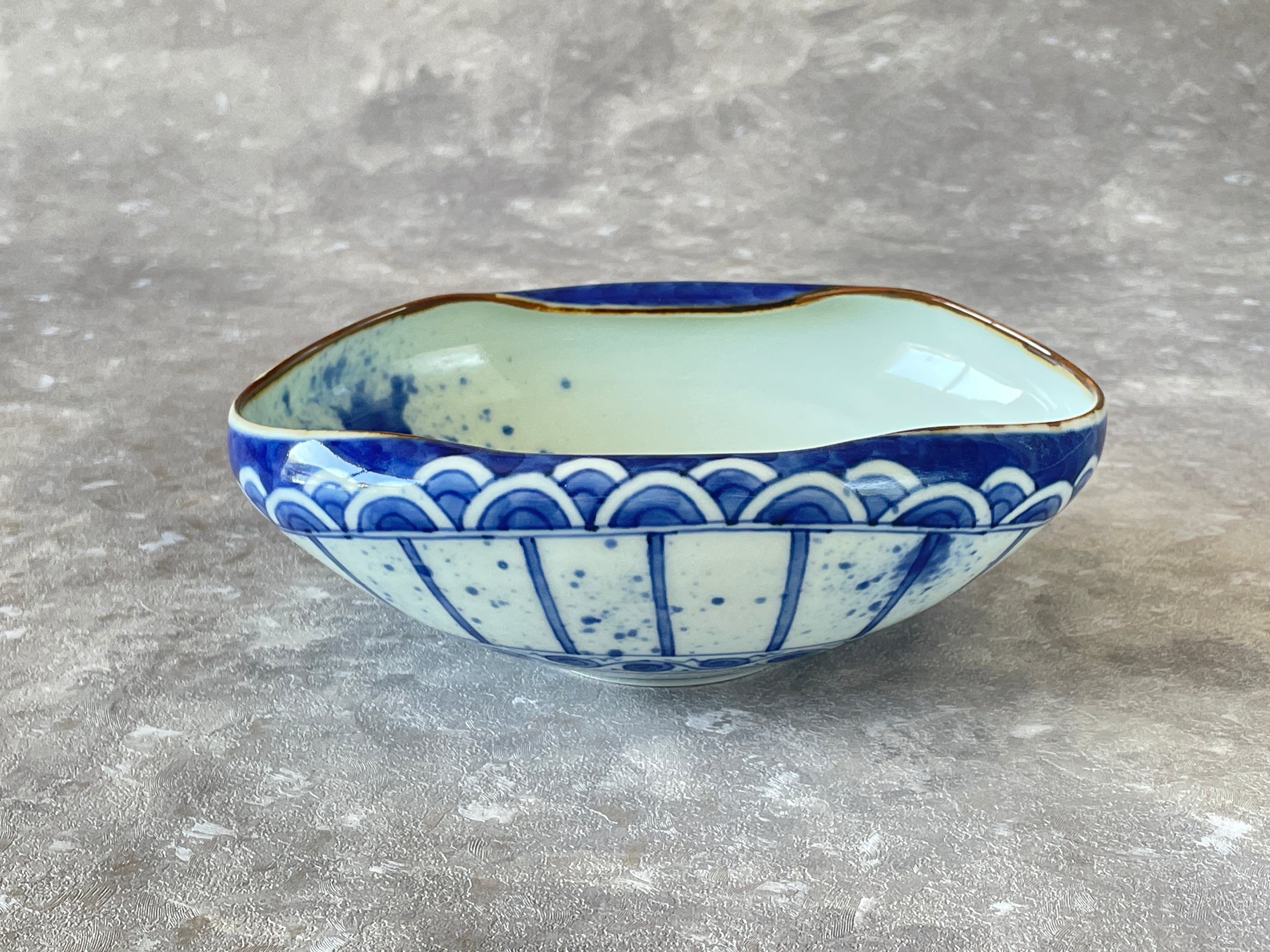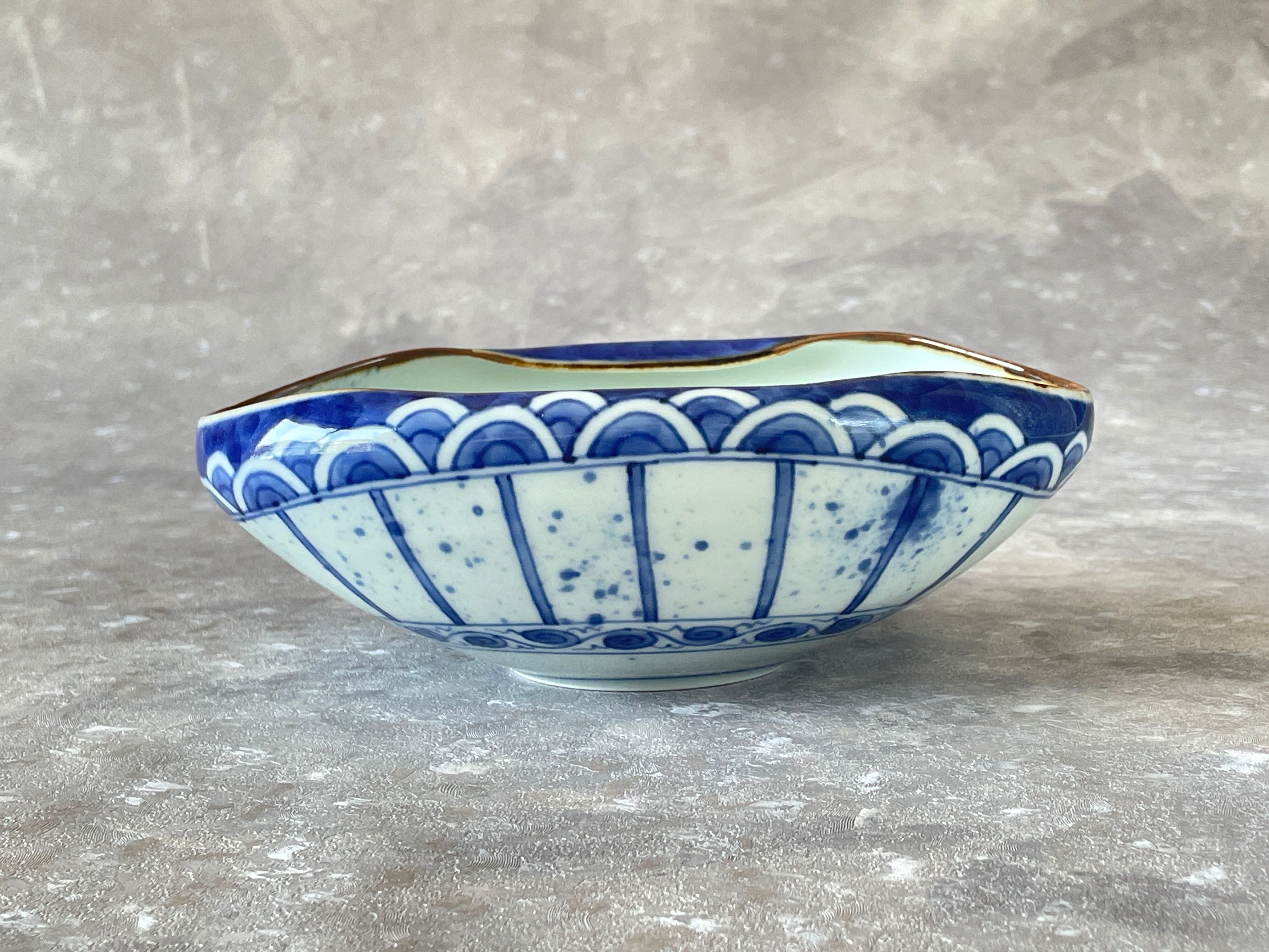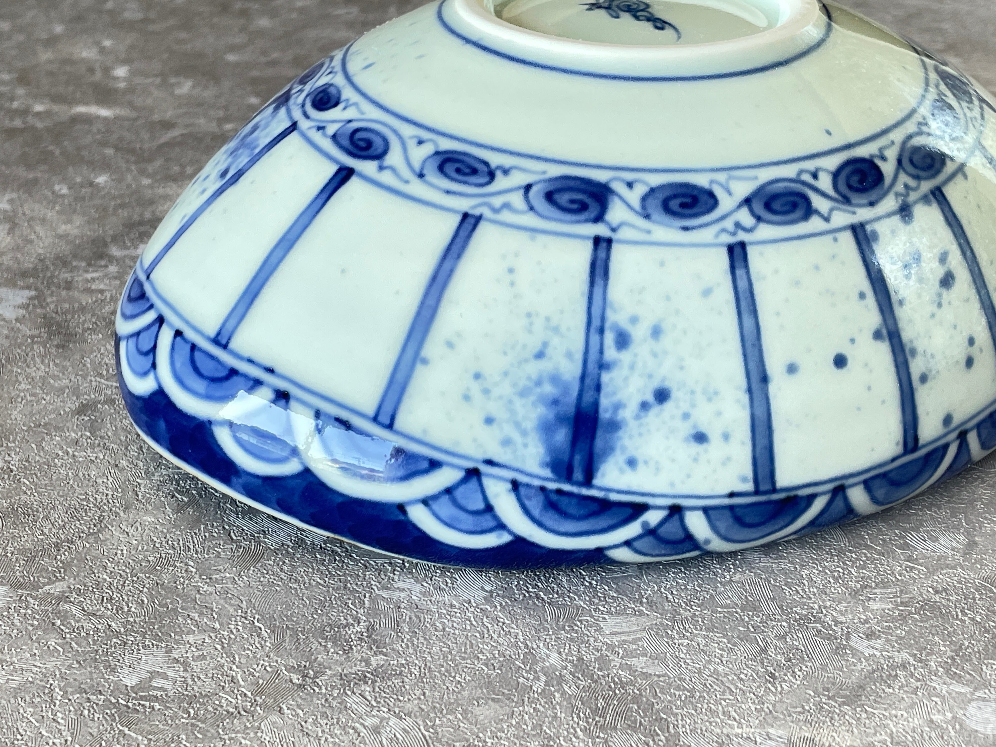 染付で青海波に十草地紋を