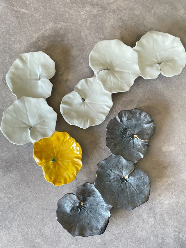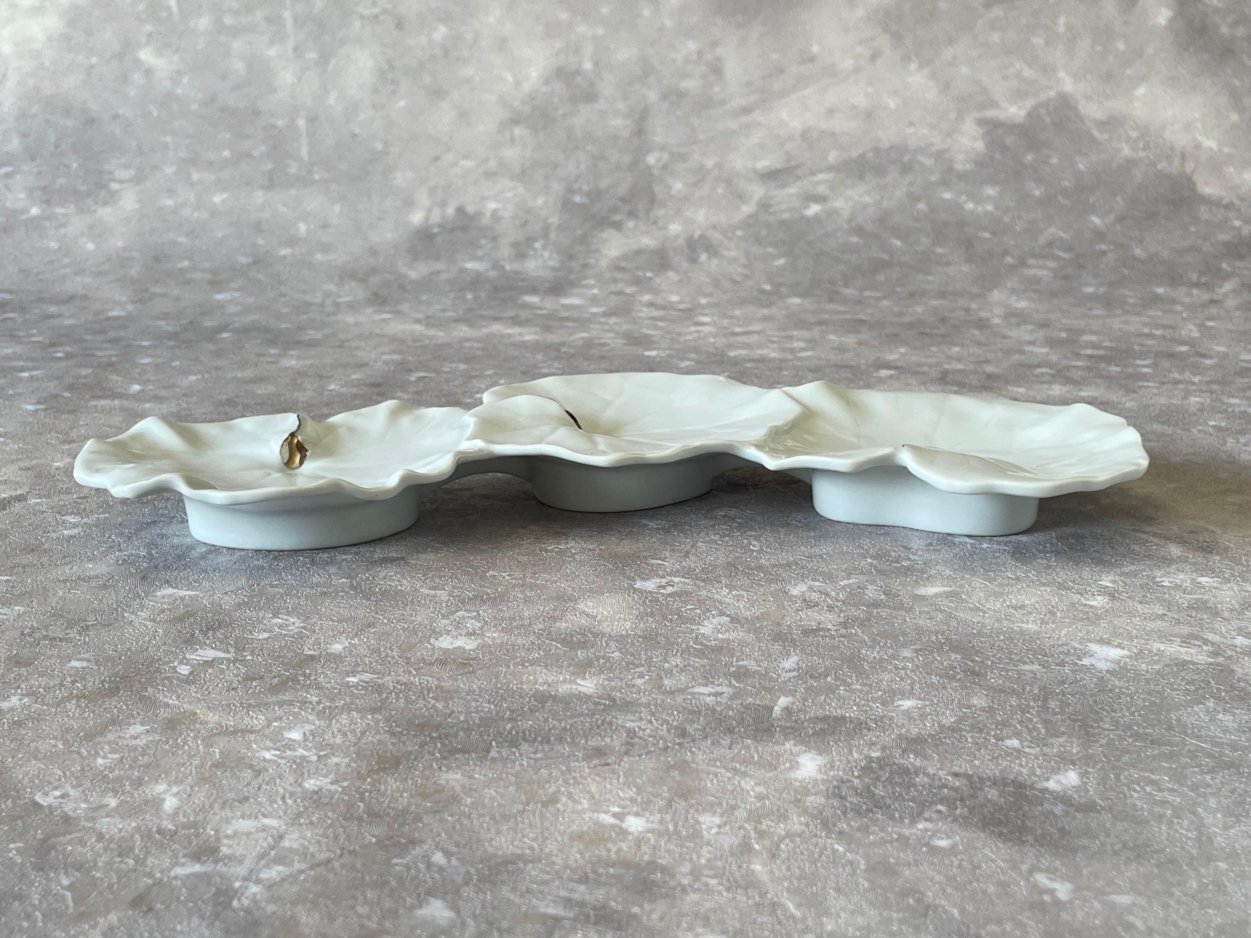 美しい白磁釉とプラチナ茎が優雅な三連皿。
