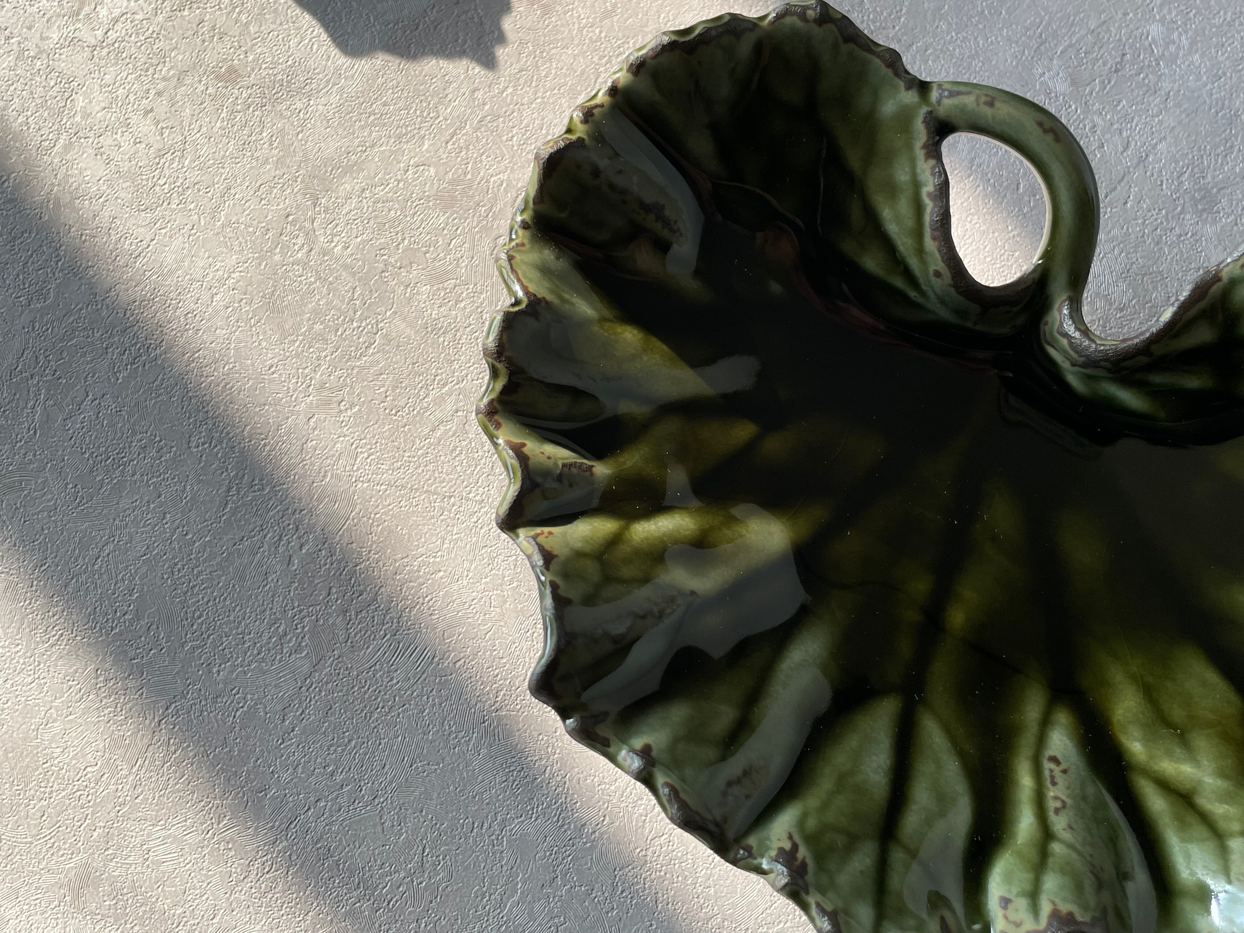 有田焼 福泉窯 黒緑釉つわ型向付
