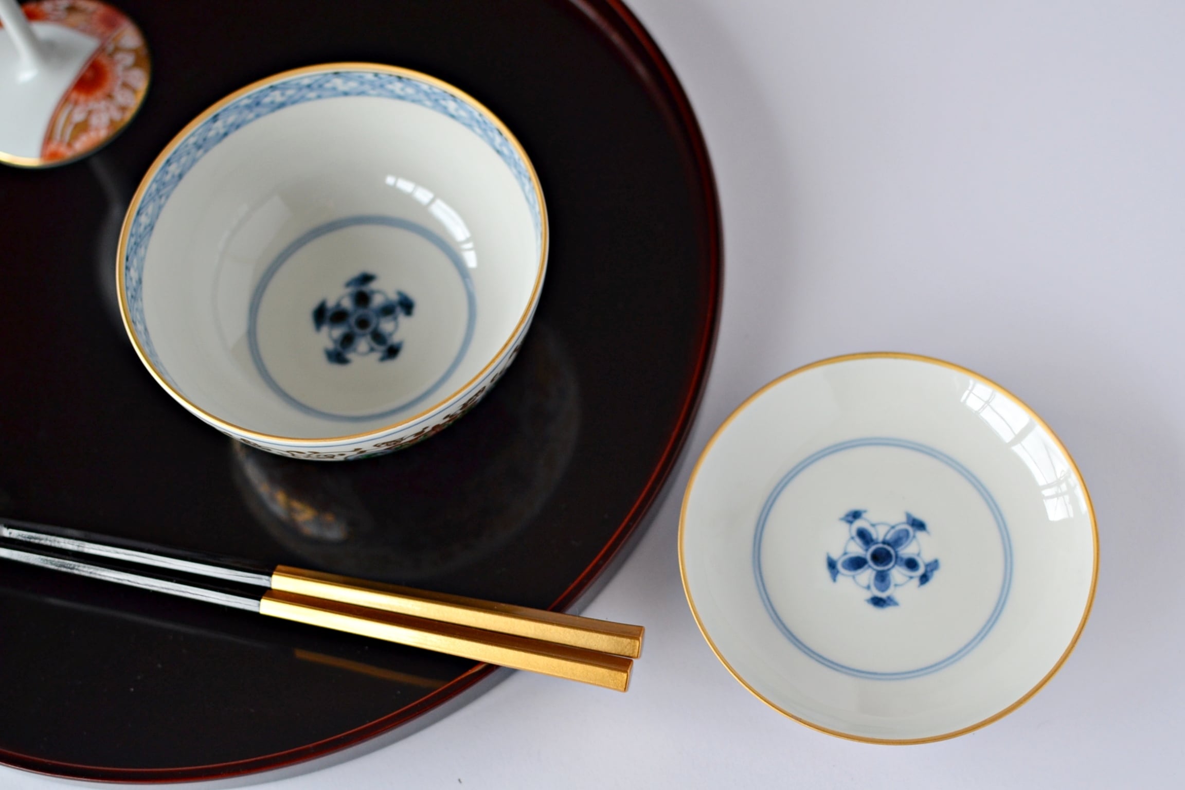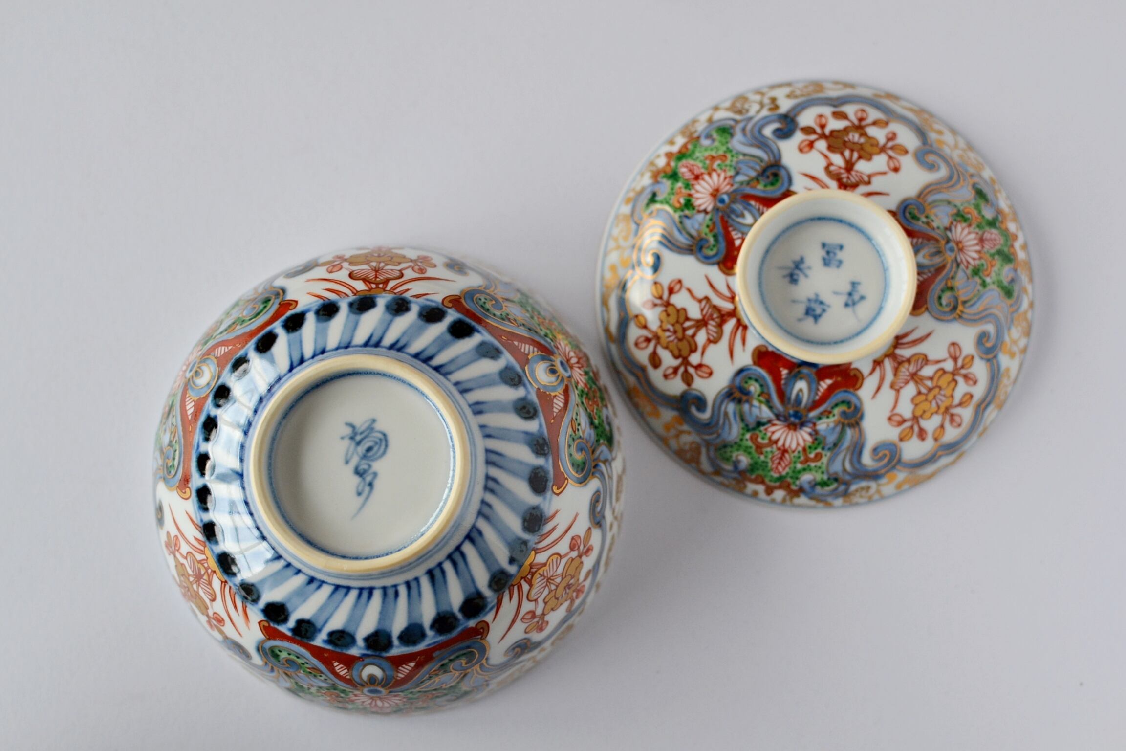 有田焼 福泉窯 染錦間取草花富貴長春蓋物 / 白磁