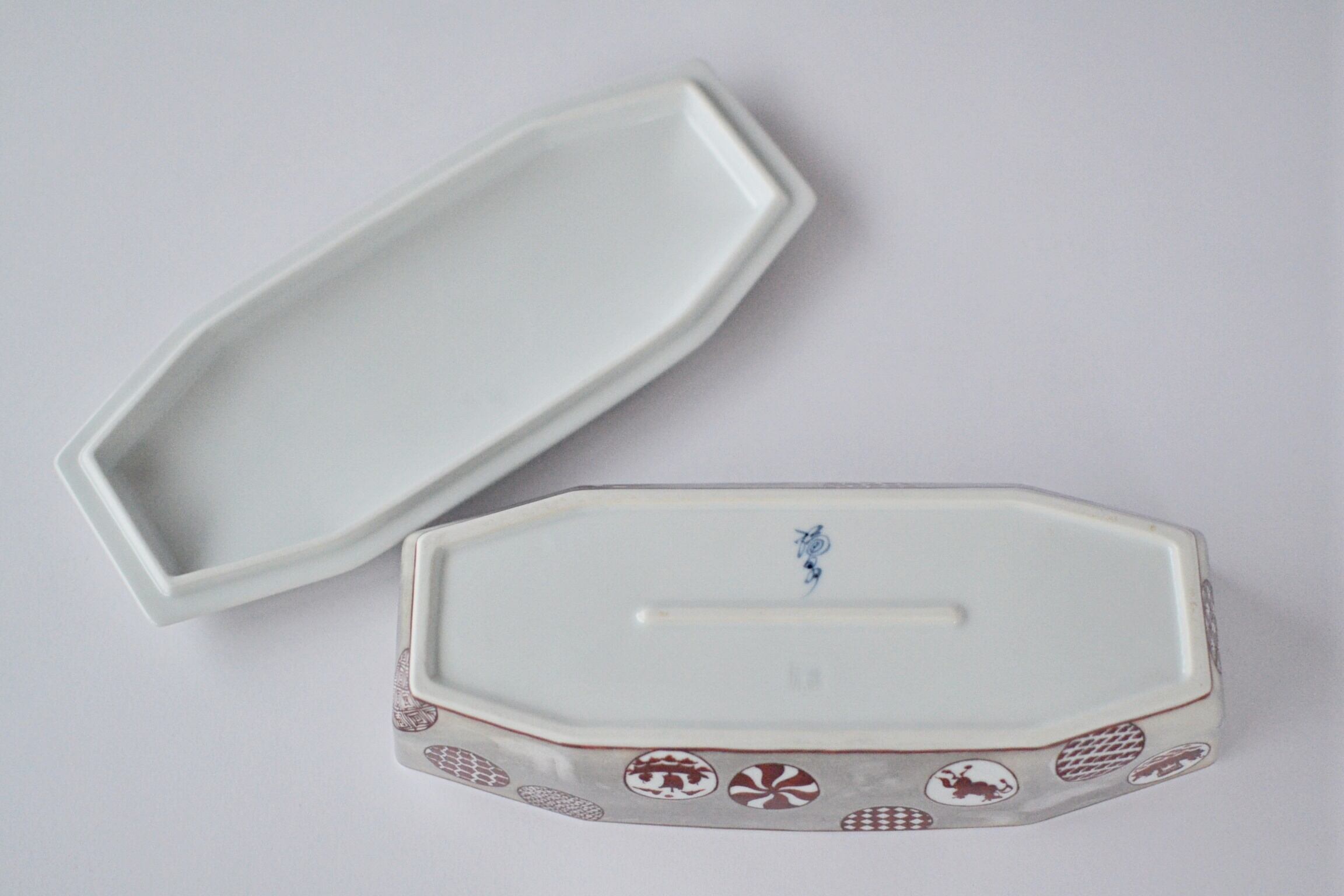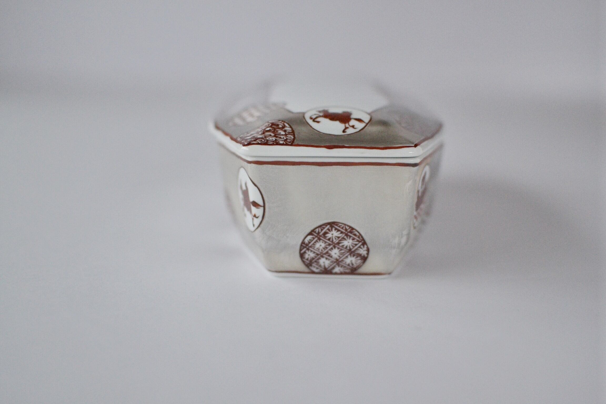 縁起の良い八角形の陶箱(蓋物)で、