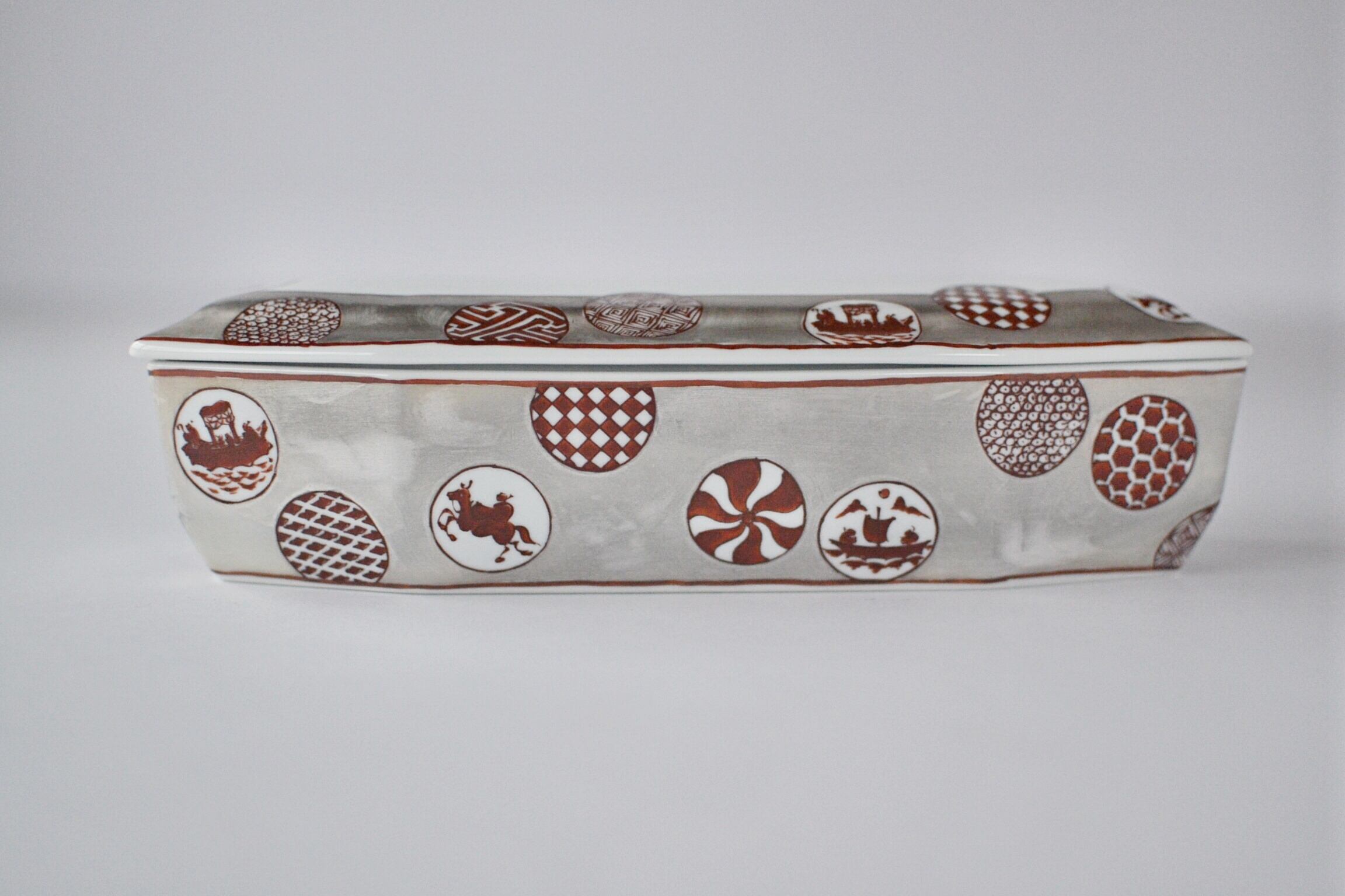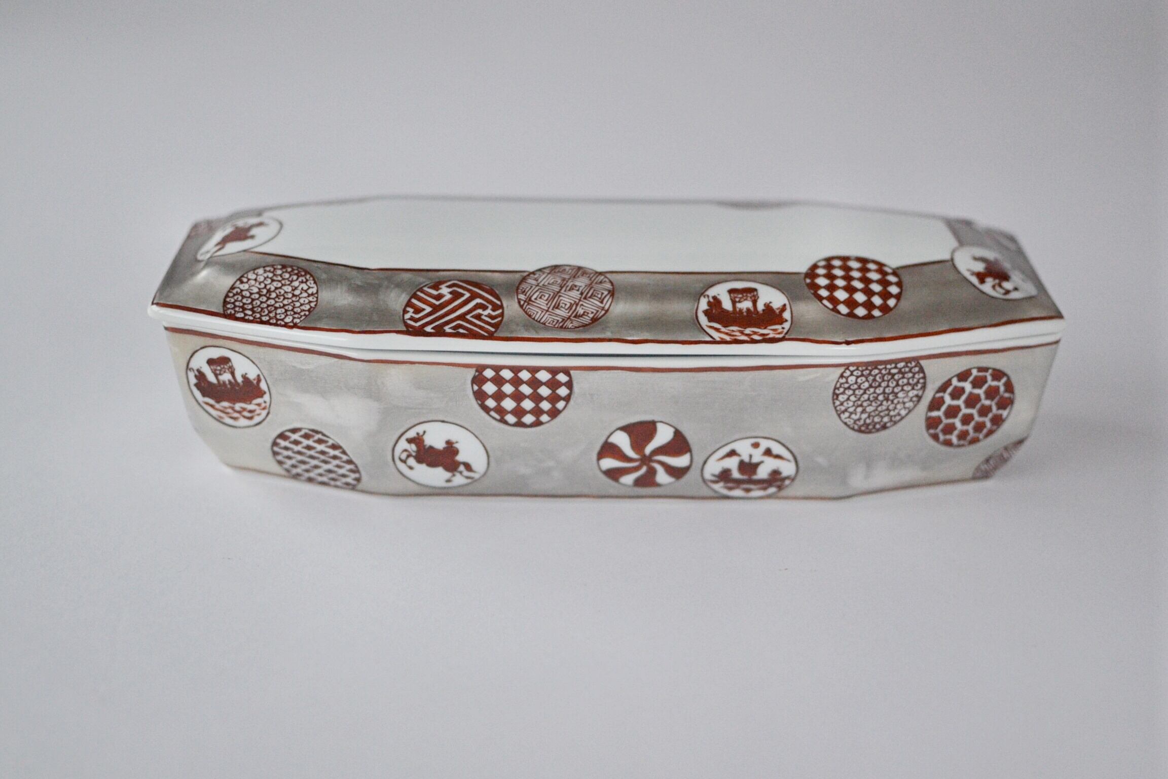有田焼 福泉窯 銀彩錦丸紋八角陶箱