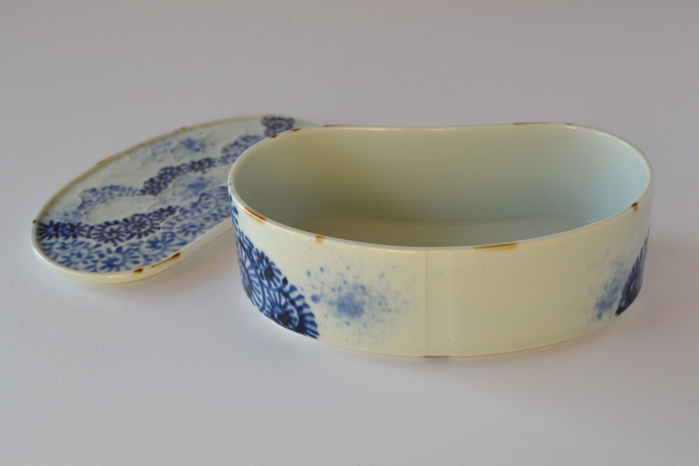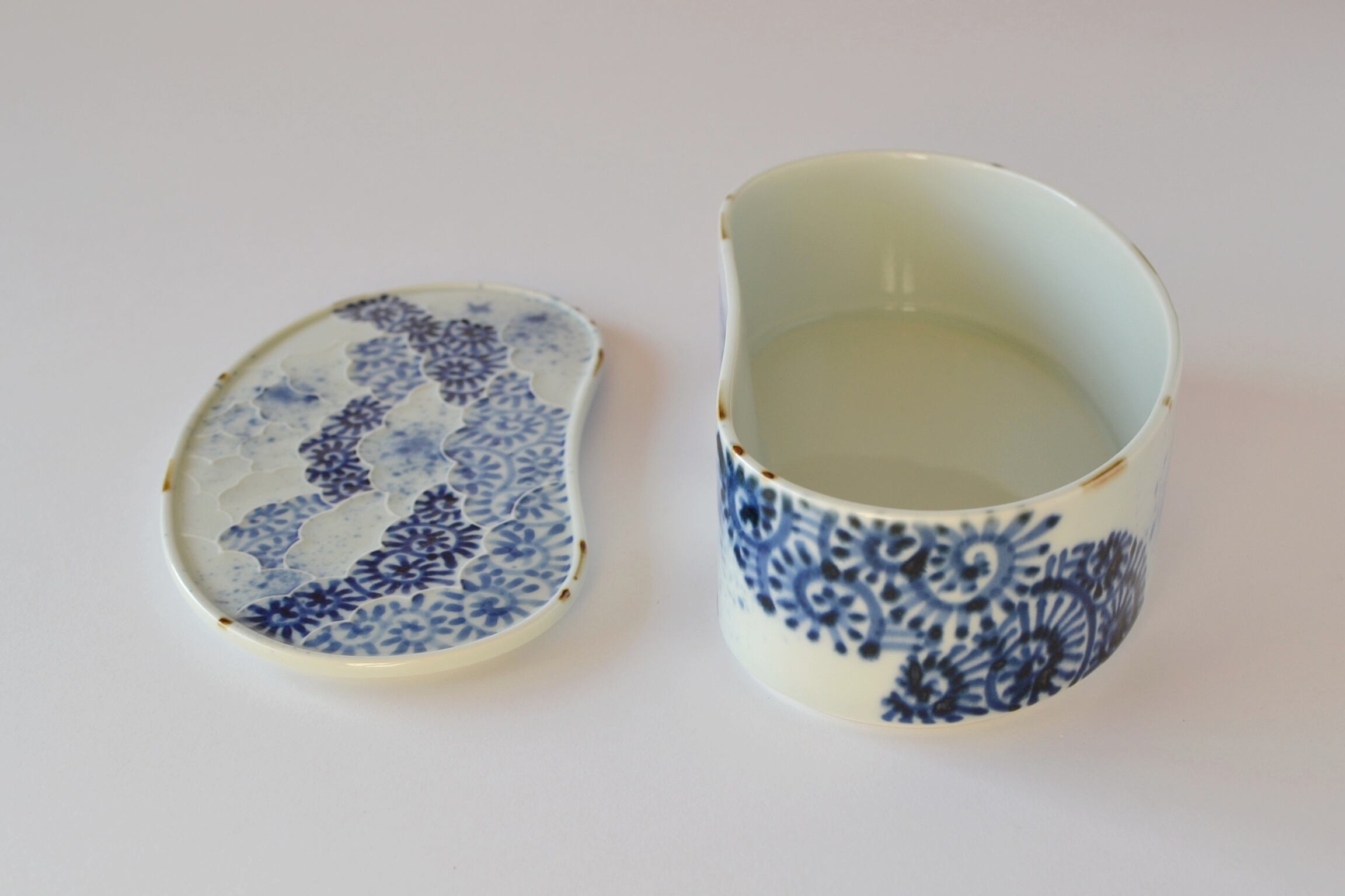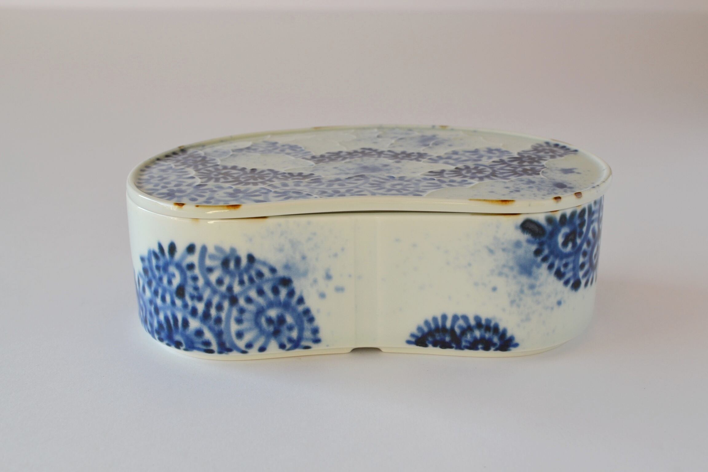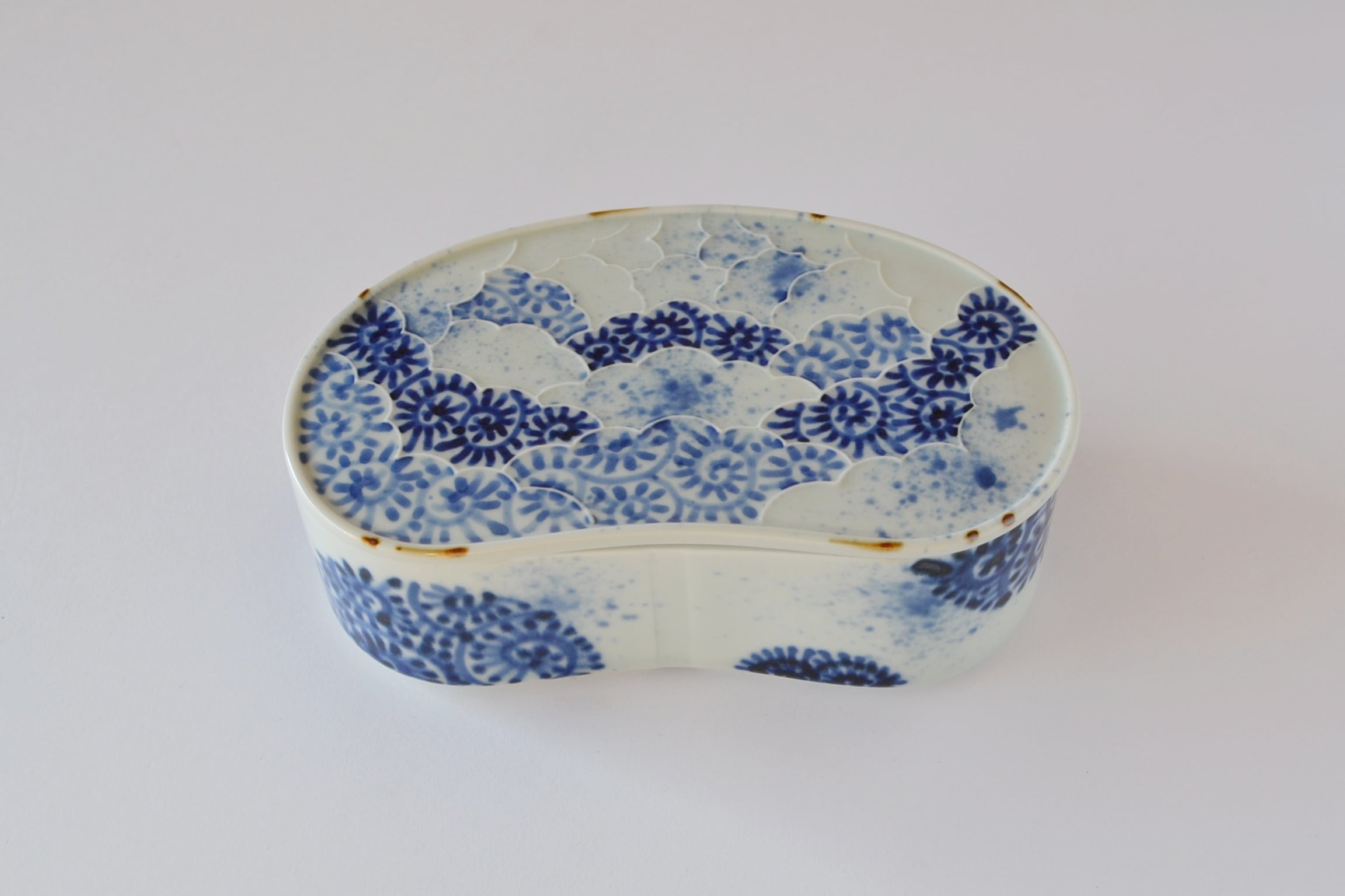 【送料無料】有田焼 福泉窯 繭型陶箱 / 染付濃淡蛸唐草