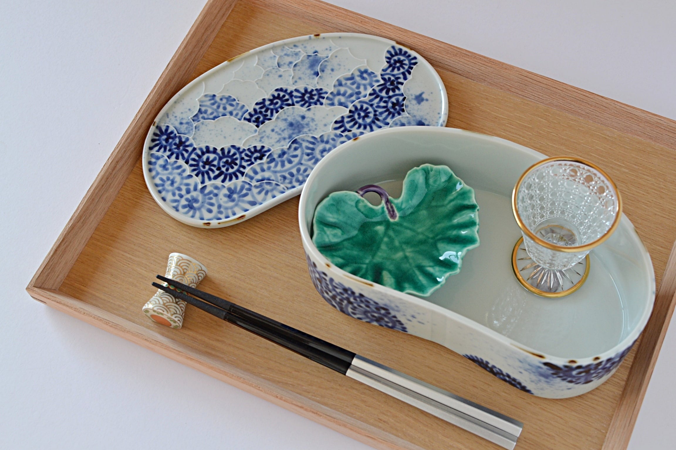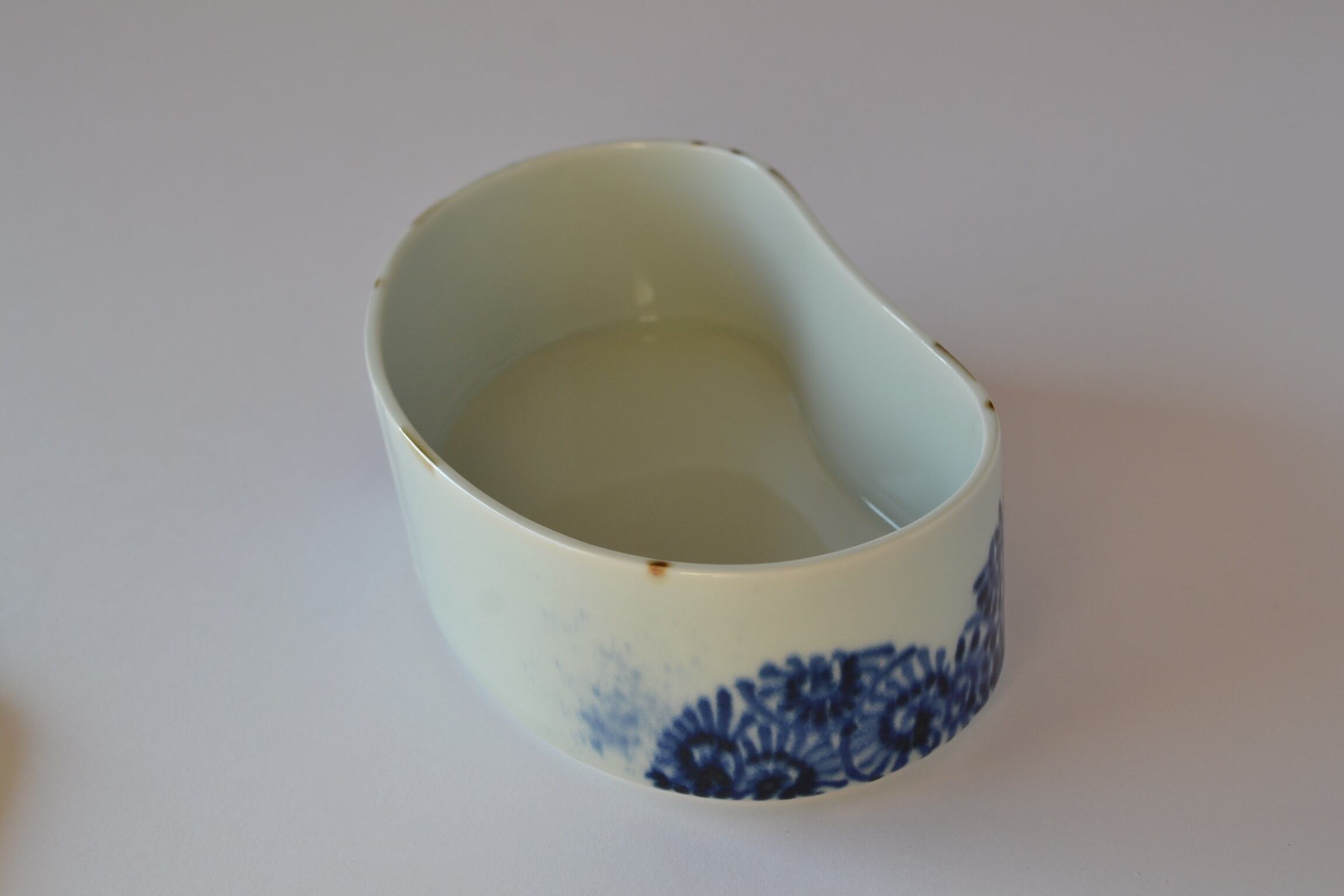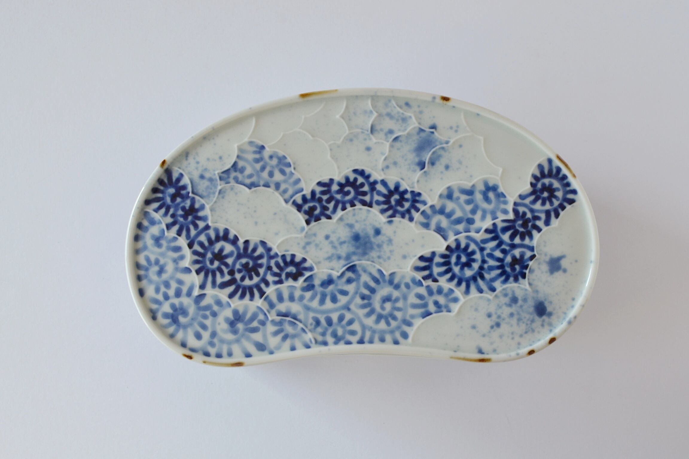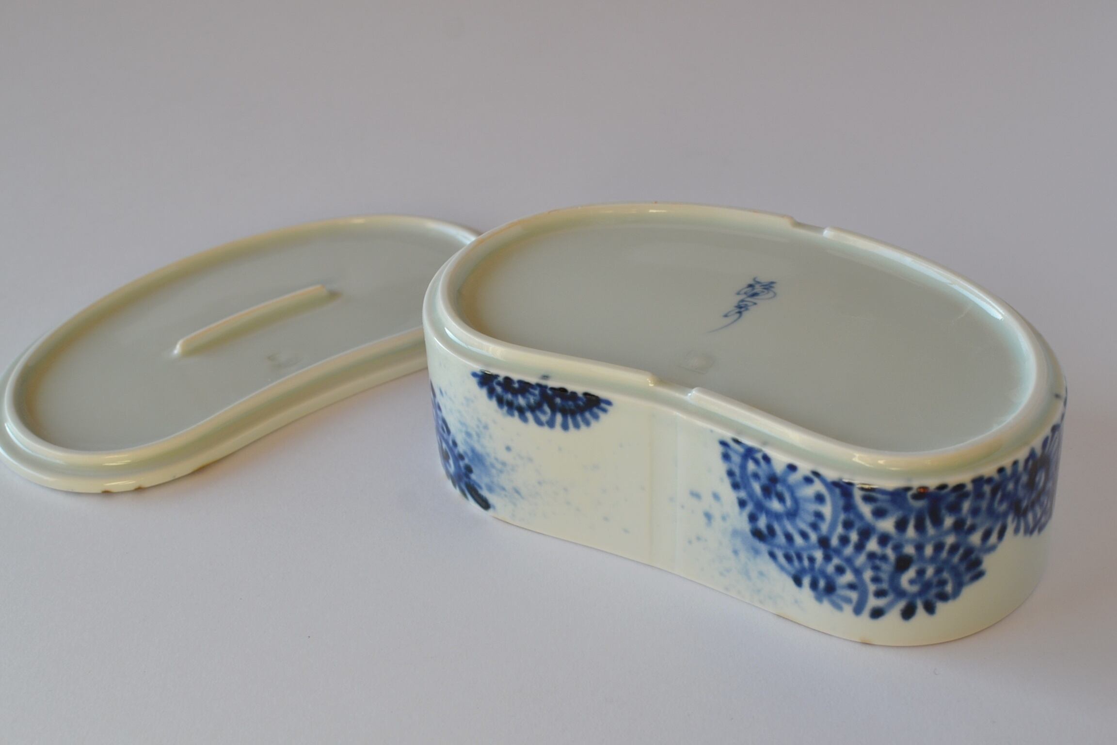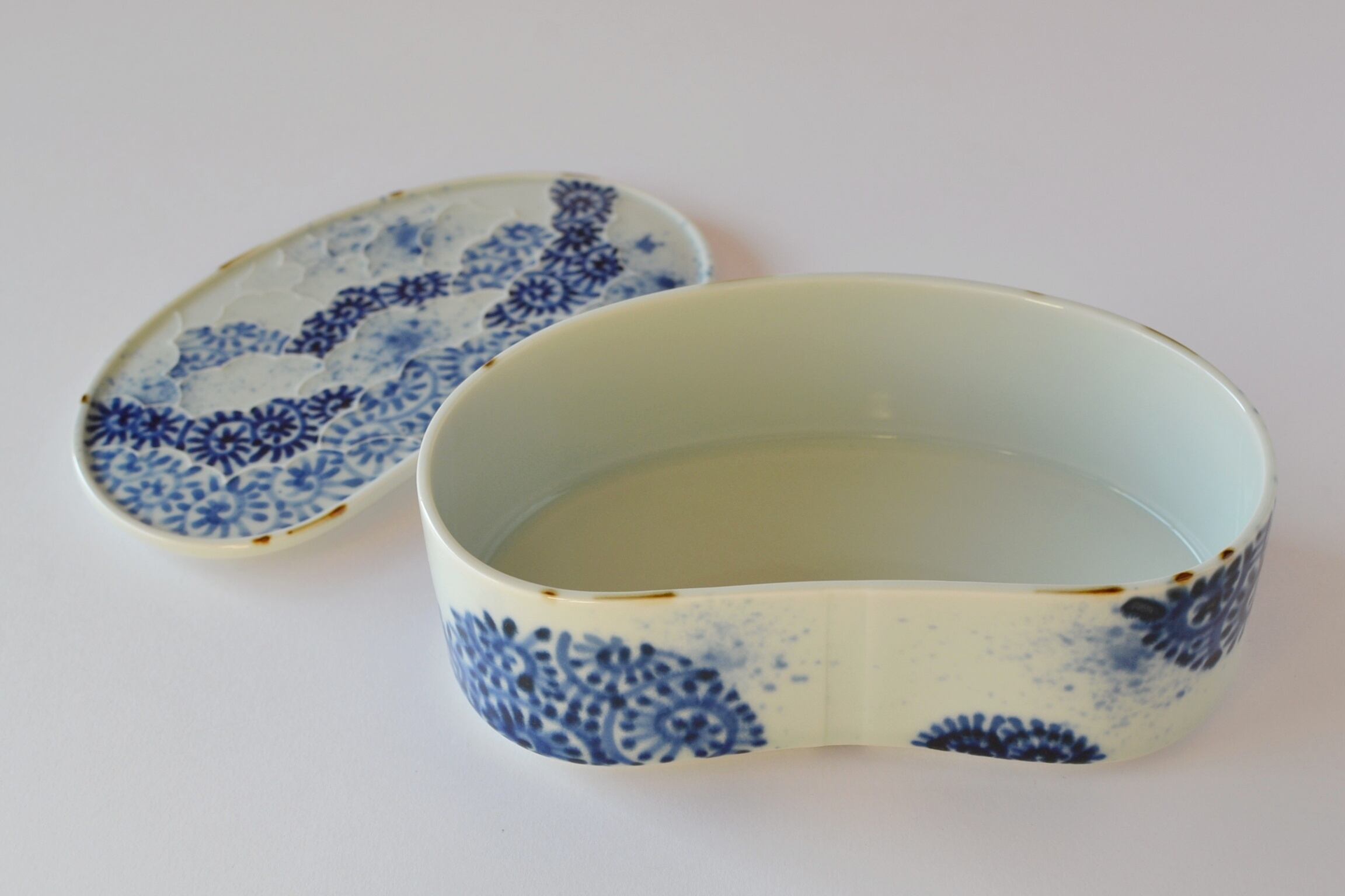 【送料無料】有田焼 福泉窯 繭型陶箱 / 染付濃淡蛸唐草