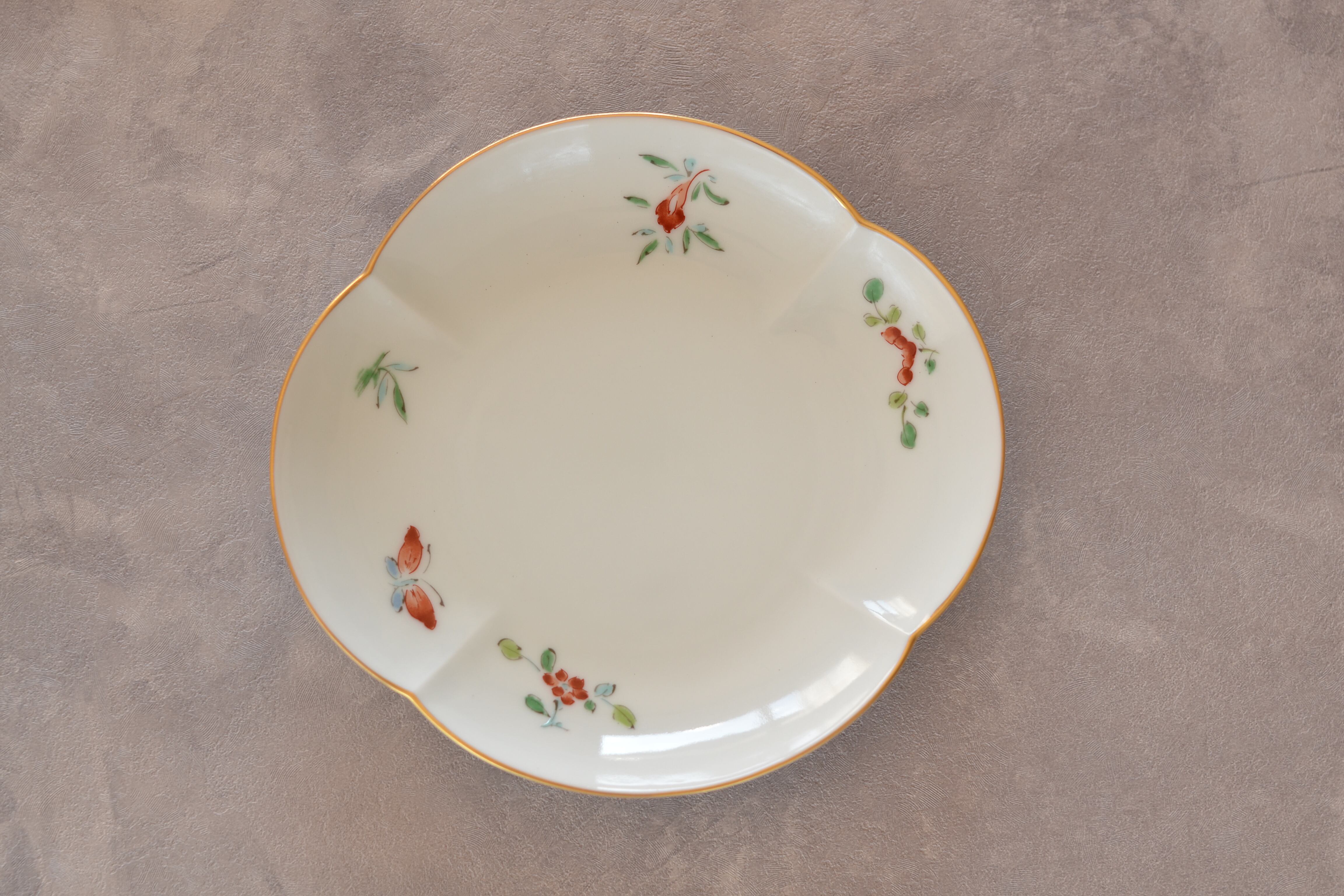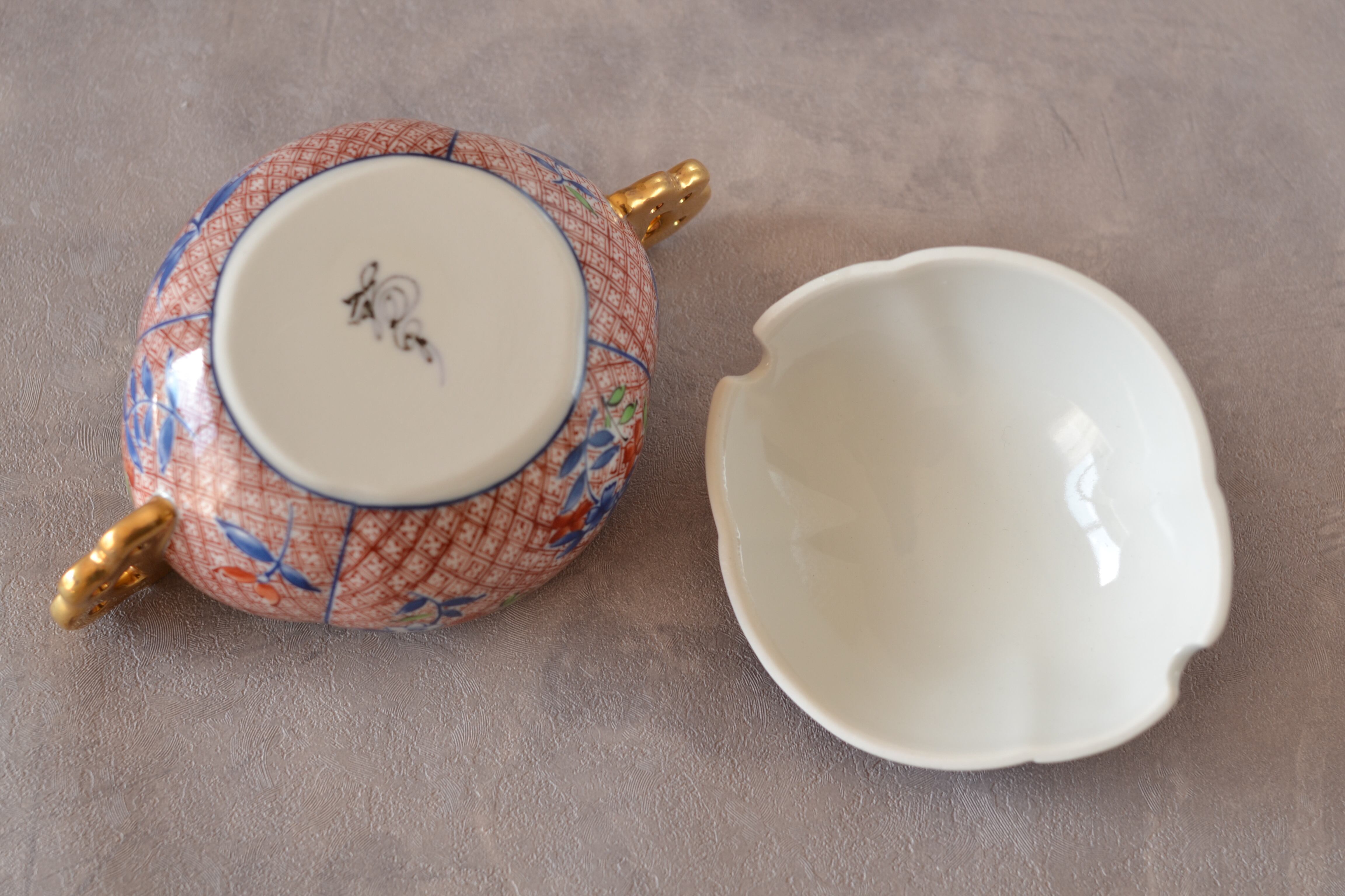 有田焼 福泉窯 染錦草花金彩耳付木瓜型蓋物 FUCHIGAMI TOJIKI別注