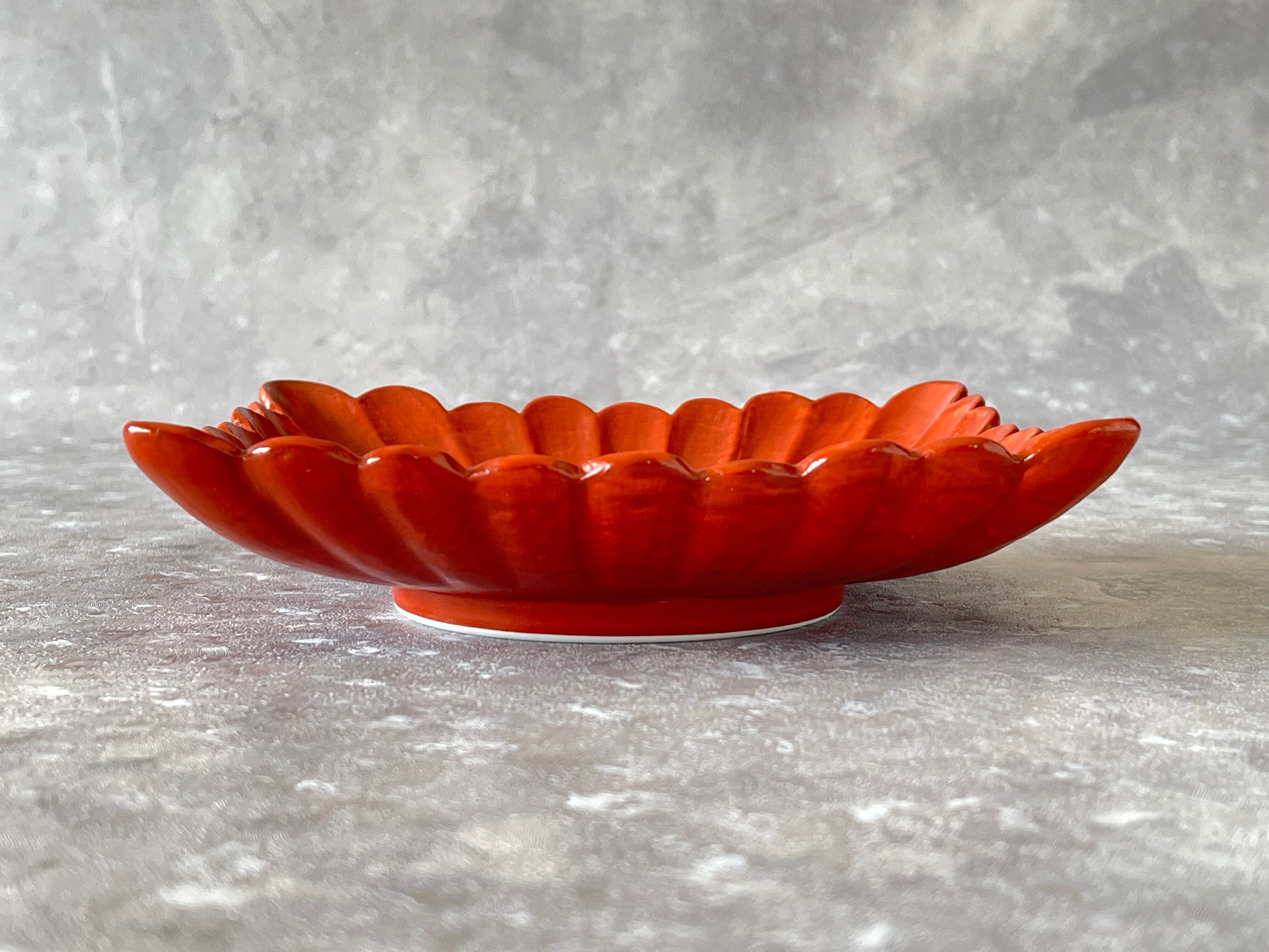有田焼 福泉窯 菊割長角皿 / 朱巻