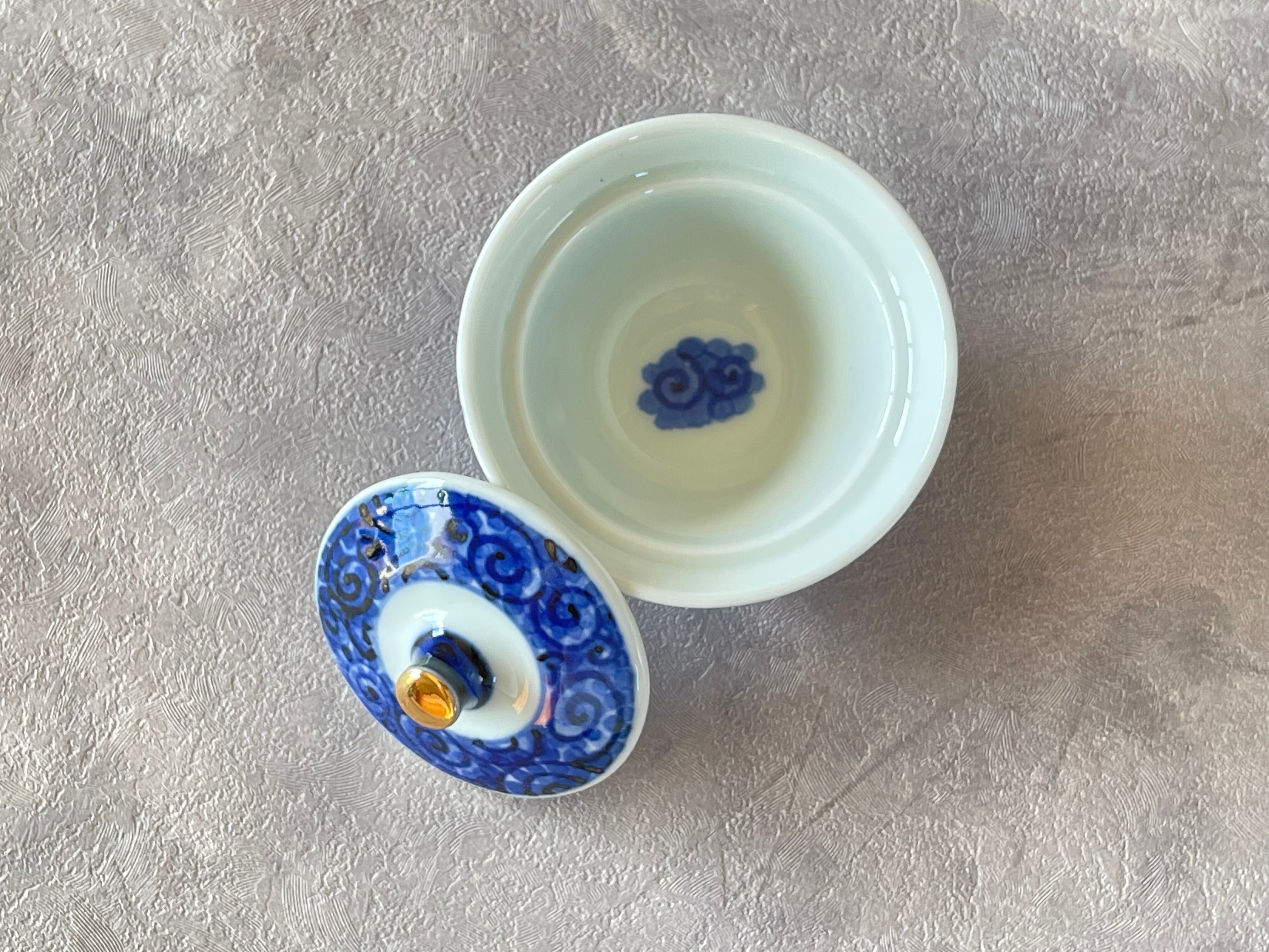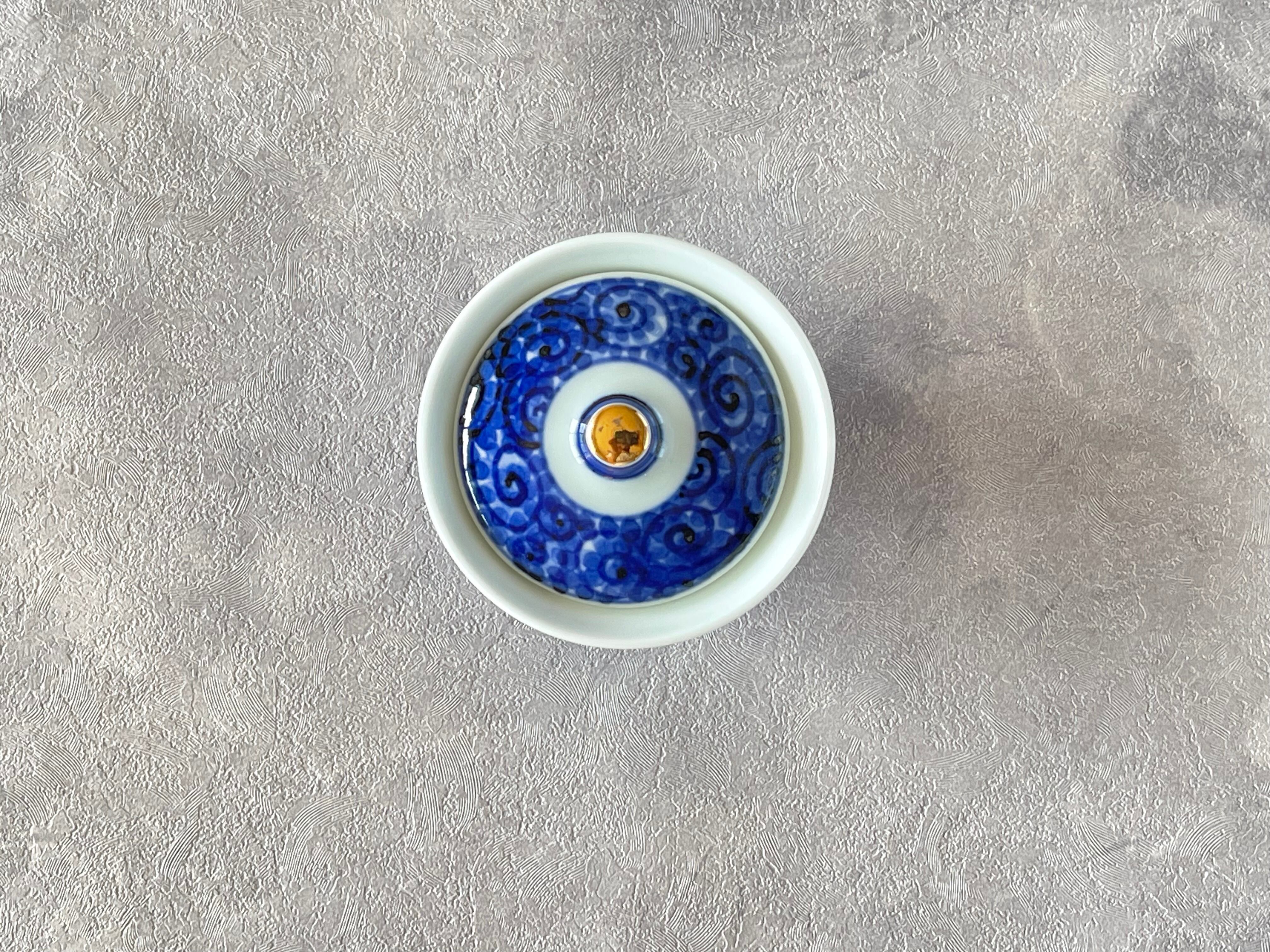 有田焼 手描き 反り型蓋物小付 / 蛸唐草 ゴールド